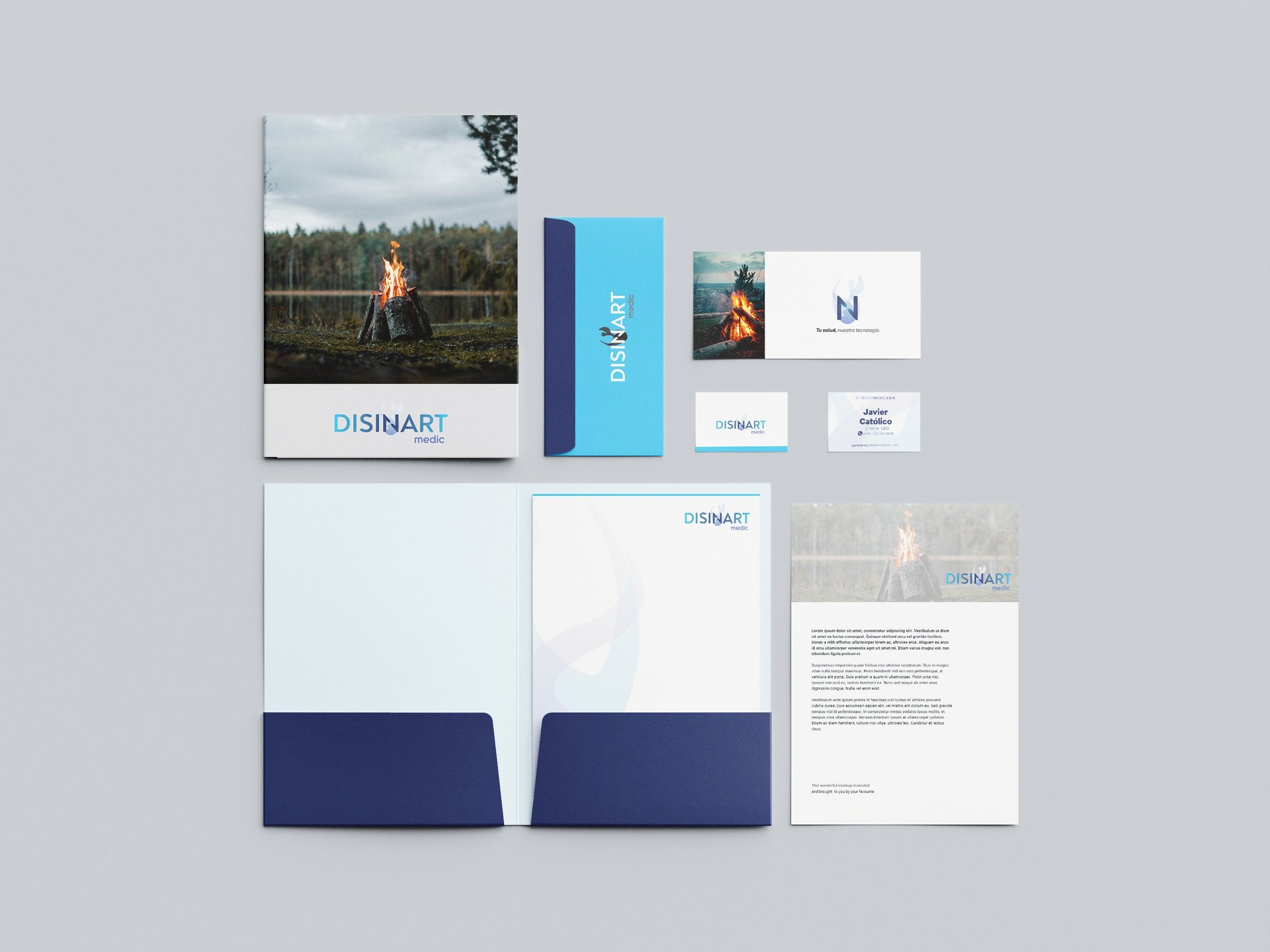 Una nueva empresa que incursiona en el mercado de la importación de equipos médicos. Para su identidad se implementó el fuego{que funcionó como un esterilizador en tiempos antiguos} como base de diseño.